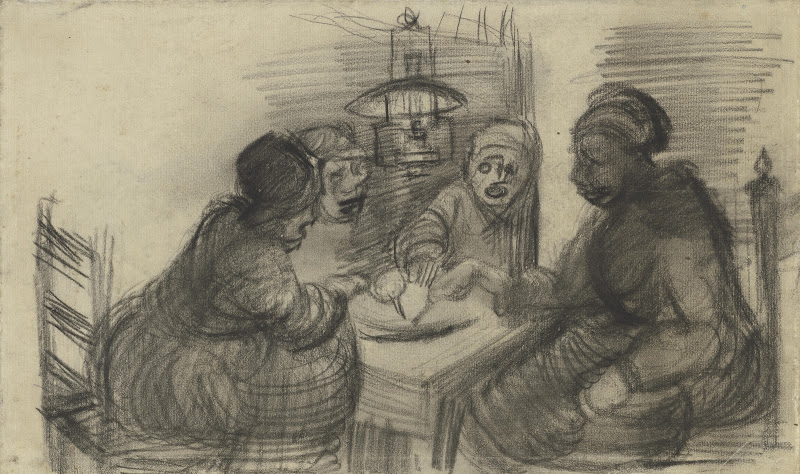 The potato eaters is the most ambitious painting of Van Gogh’s Dutch period. Prior to starting the painting, he makes over a hundred portrait studies of farmworkers, various drawings and two painted studies. Thus he prepares himself for his first large painting on the theme of peasant life in Brabant, which he regards as a kind of test of his mastery. He wants to prove that he is on his way to becoming an accomplished figure painter. This painting precedes the final version and has virtually the same composition, but the layout is sketchier. (출처: Kröller-Müller Museum)